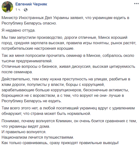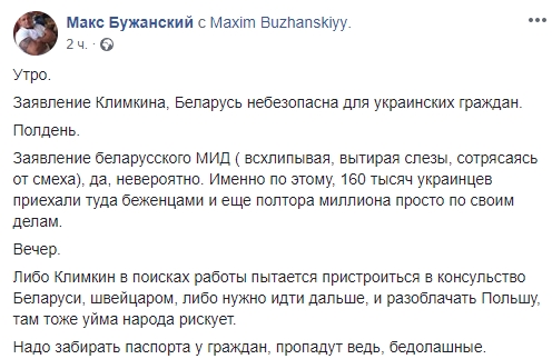 Блогер Макс Бужанский изложил свою версию дальнейшего развития событий: "Утро. Заявление Климкина, Беларусь небезопасна для украинских граждан.