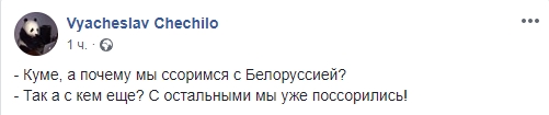 "– Куме, а почему мы ссоримся с Белоруссией?