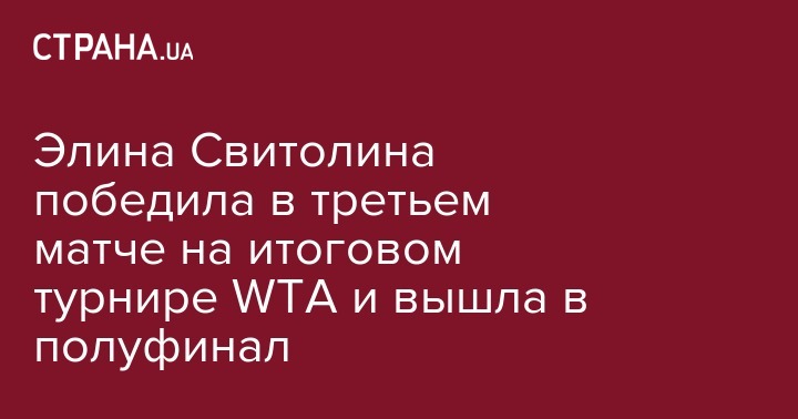 Первая ракетка Украины Элина Свитолина в третьем раунде Белой группы итогового турнира WTA в Сингапуре победила действующую чемпионку соревнований Каролин Возняцки. Матч завершился в трех сетах 5:7, 7:5, 6:3.