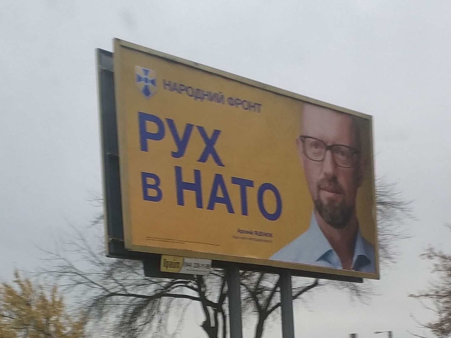 Слоган первого билборда - энергетическая независимость (вероятно, от России). Второго - "Украинский язык, кино и песня". Третьего - "Движение в НАТО". Эта риторика схожа с президентской. Из-за чего складывается впечатление, что Яценюк просто троллит Порошенко.