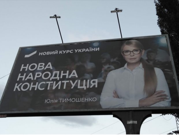 Что касается лидера рейтингов - Юлии Тимошенко, то она продолжает размещать билборды с рекламой свой "новшеств" - "Новый экономический курс Украины", "Новая народная Конституция" и прочее.