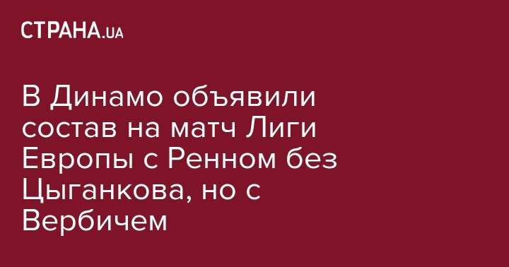 Динамо объявил состав перед игрой с Ренном (онлайн Ренн - Динамо транслирует "Страна").