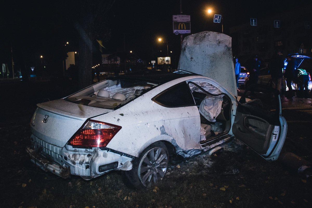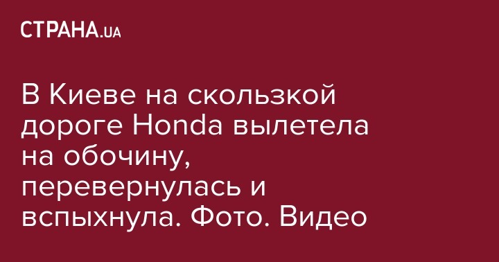 В Киеве на скользкой дороге Honda вылетела на обочину, перевернулась и вспыхнула. Фото. Видео