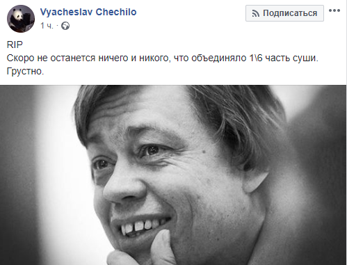 "RIP. Скоро не останется ничего и никого, что объединяло 1\6 часть суши. Грустно", – написал Вячеслав Чечило.