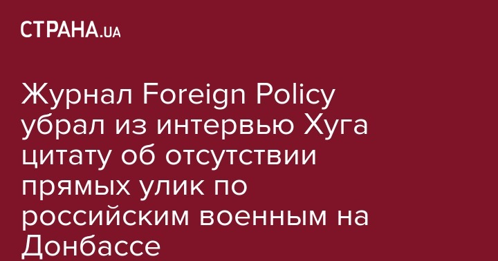 Журнал Foreign Policy убрал из интервью Хуга цитату об отсутствии прямых улик по российским военным на Донбассе