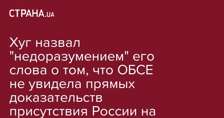 Первый зампредседателя Специальной мониторинговой миссии ОБСЕ Александр Хуг считает "недоразумением" распространение в СМИ его слов об отсутствии доказательств российского участия в войне на Донбассе. В это сообщает Радио Свобода.