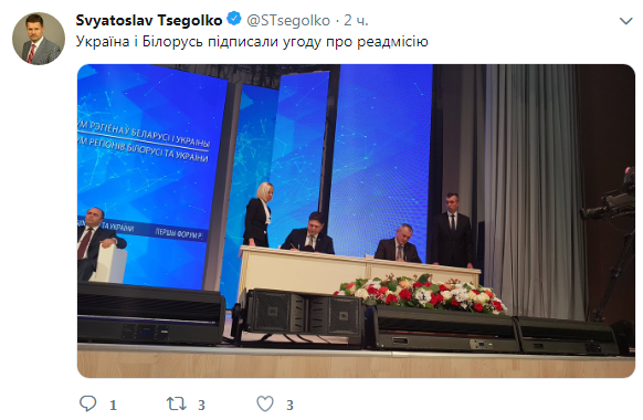 Украина и Беларусь после встречи двух президентов в Гомеле 26 октября подписали договор о реадмиссии. Об этом сообщает пресс-секретарь Петра Порошенко Святослав Цеголко на своей странице в Twitter.