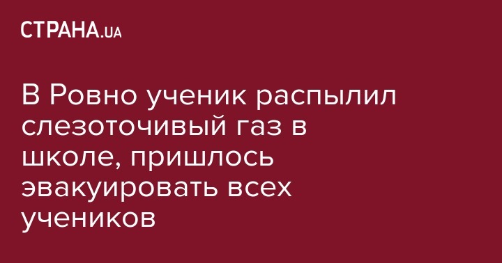 26 октября в одном из учебных заведений в Ровно произошло ЧП. Ученики школы №9, расположенной на улице Марка Вовчка, распылили в ее здании слезоточивый газ. Об этом со ссылкой на местное управление полиции пишут "Українські новини".
