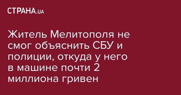 На ул. Каховское шоссе они остановили автомобиль Volkswagen, которым управлял житель Мелитополя 1991 года рождения. В транспортном средстве полицейские обнаружили и изъяли пакет с 1,9 млн гривен. Происхождение денег водитель автомобиля не смог объяснить.