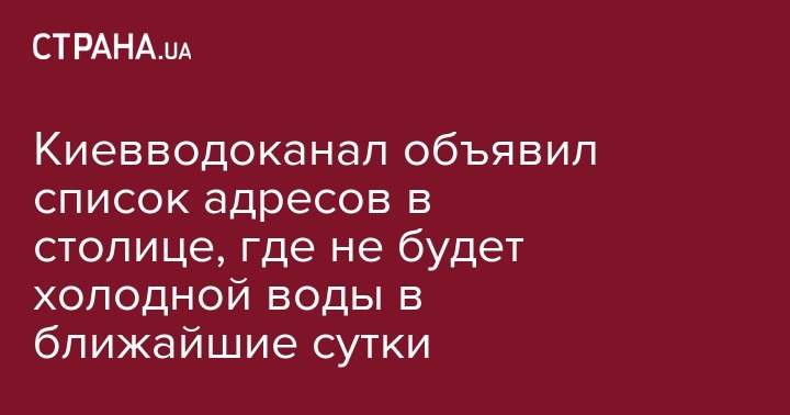Киевводоканал объявил список адресов в столице, где не будет холодной воды в ближайшие сутки