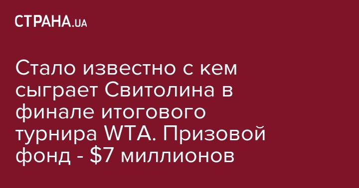 Стало известно с кем сыграет Свитолина в финале итогового турнира WTA. Призовой фонд - $7 миллионов