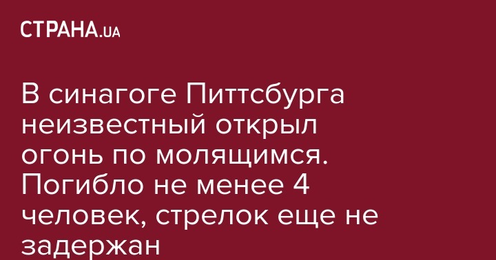В США очередная массовая трагедия. В субботу, 27 октября, в еврейский Шабат, неизвестный открыл стрельбу в районе синагоги в городе Питтсбург (штат Пенсильвания), погибли минимум четыре человека. Об этом передает ТАСС со ссылкой на американские СМИ.