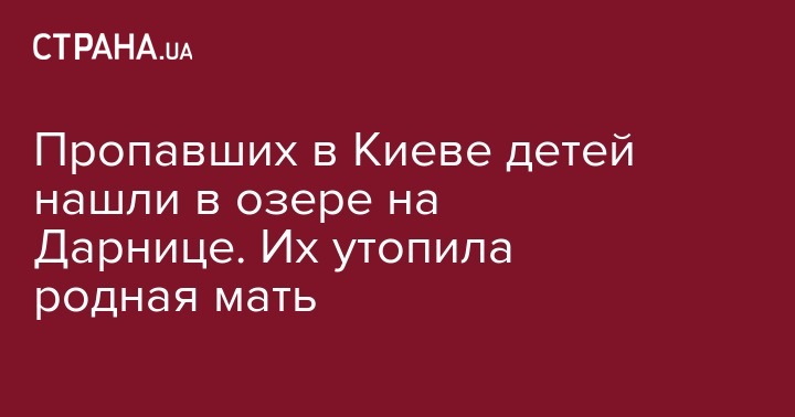 Пропавших в Киеве детей нашли в озере на Дарнице. Их утопила родная мать