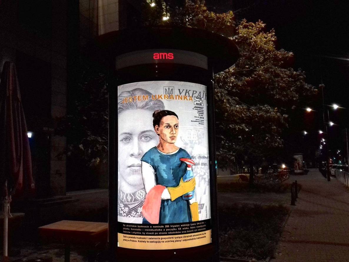 Автор идеи Оксана Брюховецкая объяснила, что статус и труд украинских мигранток в Польше должен стать предметом дискуссий. А такие плакаты придают им видимости.