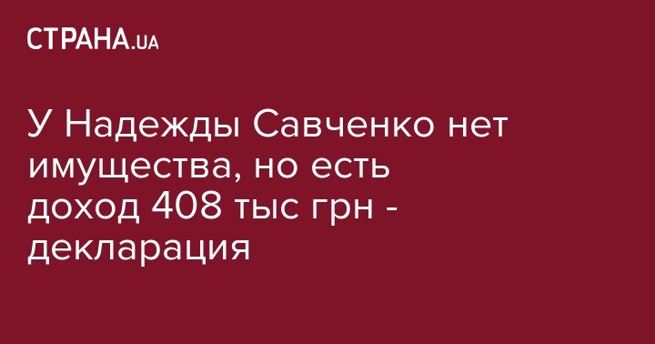 У Надежды Савченко нет имущества, но есть доход 408 тыс грн - декларация