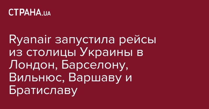 В воскресенье, 28 октября, крупнейший европейский лоукостер Ryanair начал выполнять перелеты из киевского аэропорта "Борисполь" в шесть европейских городов - Вильнюс, Варшаву, Быдгощ, Барселону, Братиславу и Лондон. Об этом сообщает Центр транспортных стратегий.