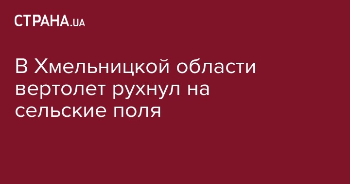 В Хмельницкой области на поле возле села Ивановка Новоушицкого района упал вертолет.  Инцидент  произошел сегодня, 7 июня, в 16.15. Об этом сообщает пресс-служба Национальной полиции.