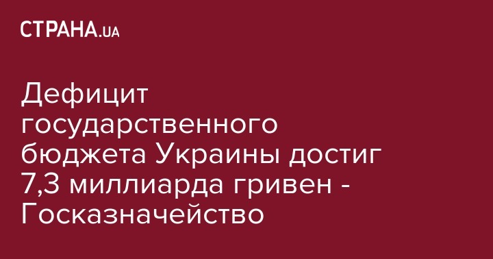 Дефицит государственного бюджета Украины достиг 7,3 миллиарда гривен - Госказначейство