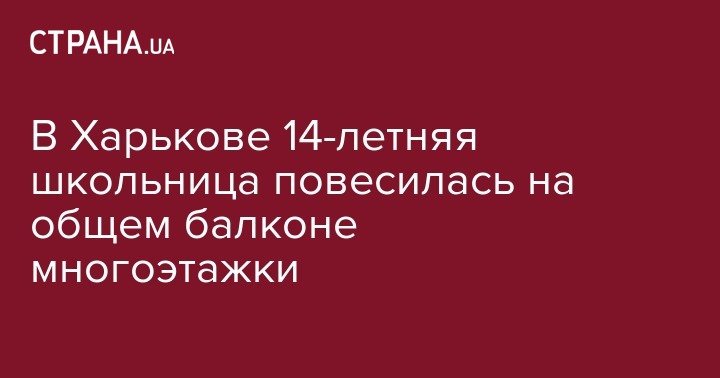В Харькове 14-летняя школьница повесилась на общем балконе многоэтажки