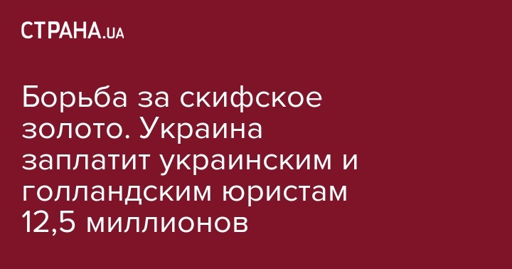 Министерство юстиции закупило за 12,5 млн гривен услуги голландских и украинских юристов для участия в апелляции  на решение суда в Нидерландах о возврате Украине экспонатов музеев из аннексированного Крыма, в частности коллекции "скифского золота". Об этом сообщают "Украинские новости" со ссылкой на тендерную документацию.