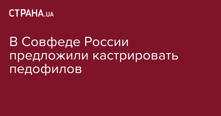 В Совете Федерации России предложили применять химическую кастрацию в отношении осужденных за педофилию, передает РИА "Новости". Законопроект подготовила группа сенаторов по руководством Елены Мизулиной.