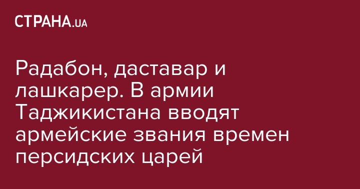 Радабон, даставар и лашкарер. В армии Таджикистана вводят армейские звания времен персидских царей