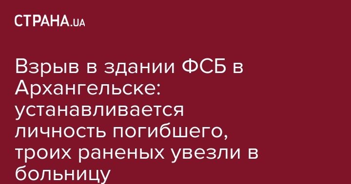 "Сработало неустановленное взрывное устройство. Трое находятся в больнице. Есть погибший, личность которого устанавливается", - сказал он и уточнил, что взрыв произошел внутри здания управления ФСБ по Архангельской области.