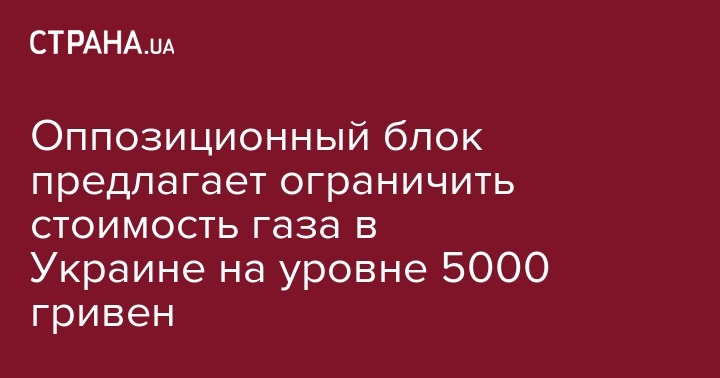 Оппозиционный блок предлагает ограничить стоимость газа в Украине на уровне 5000 гривен
