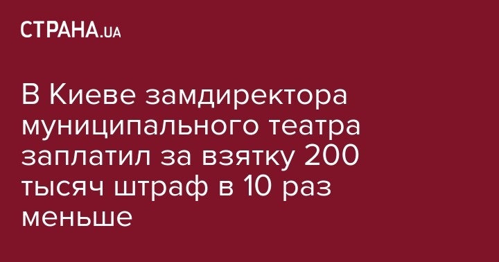 В Киеве замдиректора муниципального театра заплатил за взятку 200 тысяч штраф в 10 раз меньше