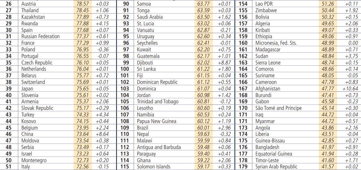 Посмотрел, где там барахтается Россия с ее санкциями и всем прочим. Оказывается, на 40 позиций выше - у нее 31 место.