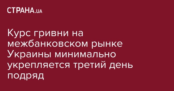 Курс гривни на межбанковском рынке Украины минимально укрепляется третий день подряд