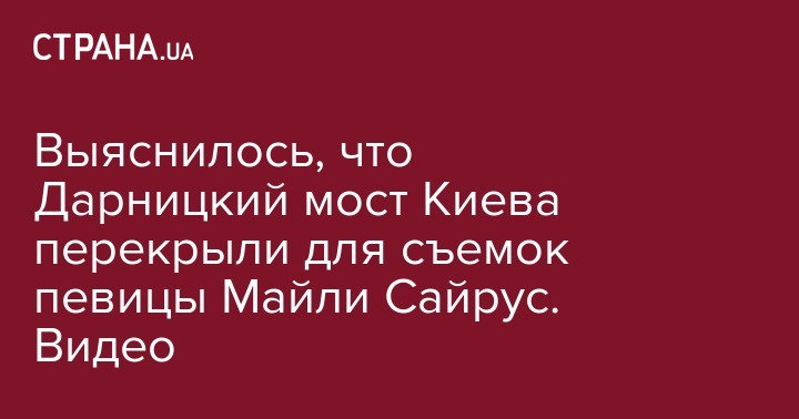 Выяснилось, что Дарницкий мост Киева перекрыли для съемок певицы Майли Сайрус. Видео