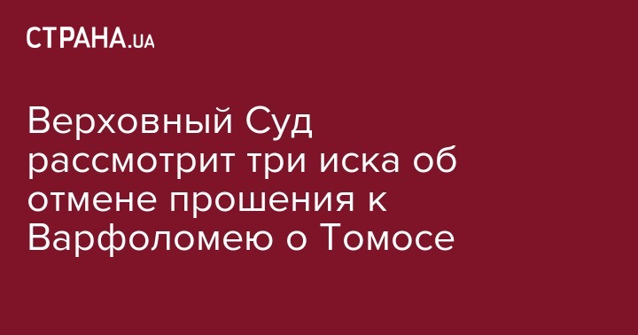 Верховный Суд рассмотрит три иска об отмене прошения к Варфоломею о Томосе