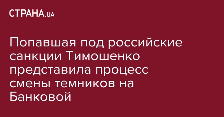 Лидер партии "Батькивщина" Юлия Тимошенко заявила, что уже представляет начавшийся "процесс замены темников" в администрации президента, после ее попадания под российские санкции. Об этом говорится в сообщении на ее странице в Facebook.