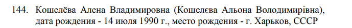 Так, в нем содержится фамилии 322 граждан Украины, при этом самая молодая из них - народный депутат Верховной рады Украины VIII созыва от Радикальной партии Олега Ляшко Алена Владимировна Кошелева (Кошелєва Альона Володимирівна) 14 июля 1990 года рождения.