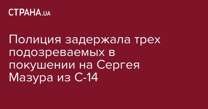 1 ноября при проведении специальных розыскных мероприятий под Киевом задержаны трое мужчин, которых подозревают в совершении покушения на убийство главы общественной организации "С-14" Сергея Мазура.