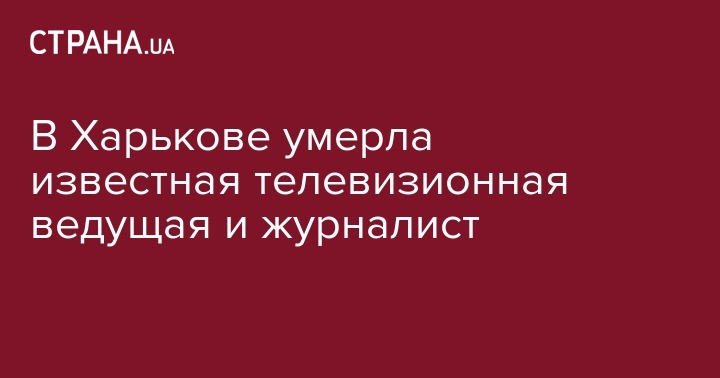 В Харькове умерла известная телевизионная ведущая и журналист