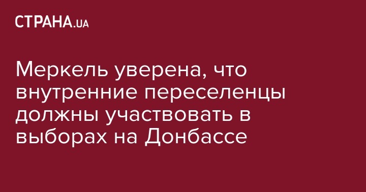 В выборах на Донбассе, предусмотренных минскими договоренностями об урегулировании ситуации на востоке Украины, должны иметь возможность принять участие все внутренние переселенцы, выехавшие из этого региона в другие области Украины. На этом настаивает канцлер Германии Ангела Меркель, сообщает "Интерфакс-Украина".