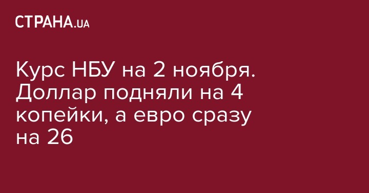 Курс НБУ на 2 ноября. Доллар подняли на 4 копейки, а евро сразу на 26