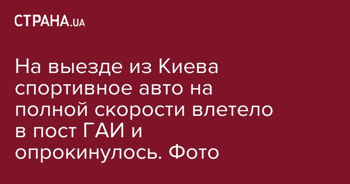 На выезде из Киева спортивное авто на полной скорости влетело в пост ГАИ и опрокинулось. Фото