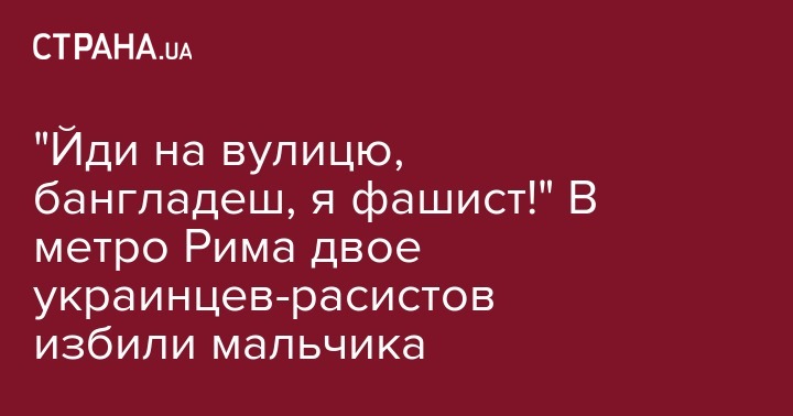 В метро столицы Италии - Рима двое хулиганов-расистов, которые общались на украинском языке, сперва оскорбили, а затем избили мальчика индийской наружности. Также до крови пострадала женщина, которая попыталась вмешаться и защитить его. Об этом сообщает местное итальянское издание roma.fanpage.it.