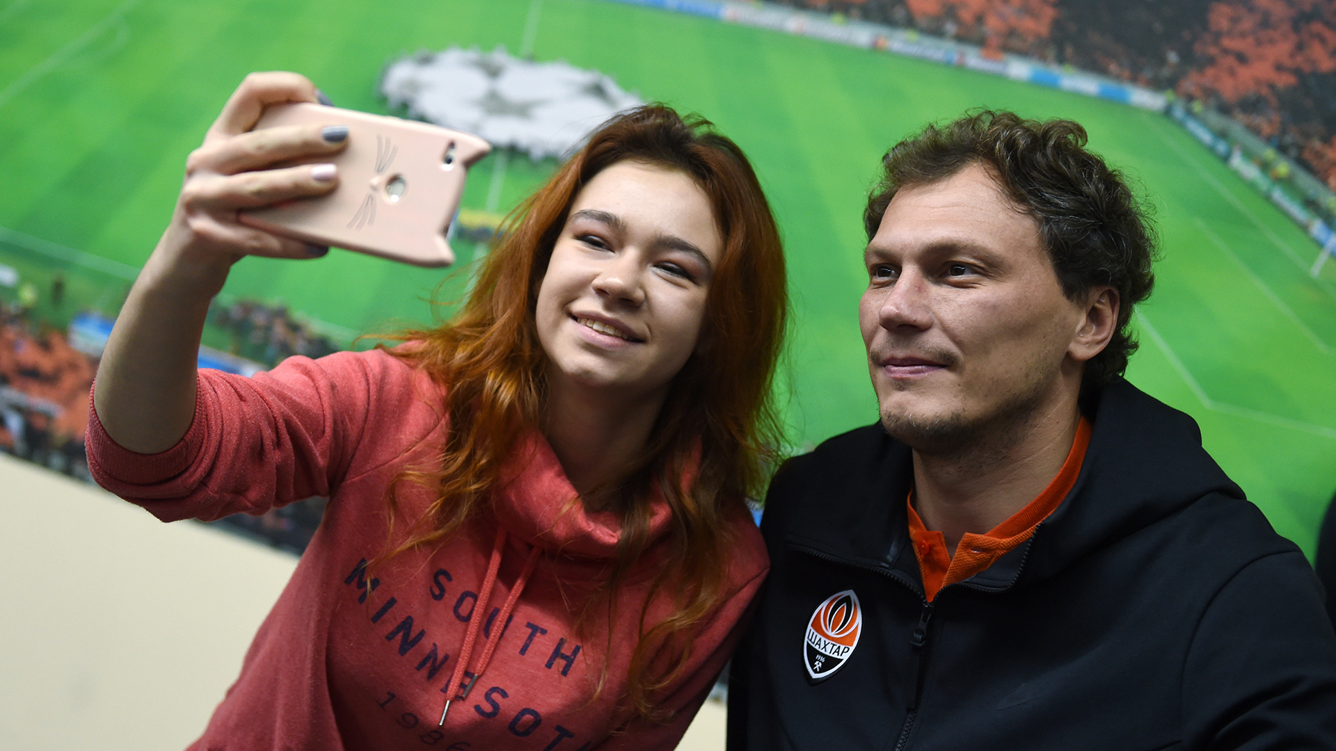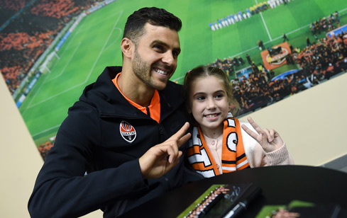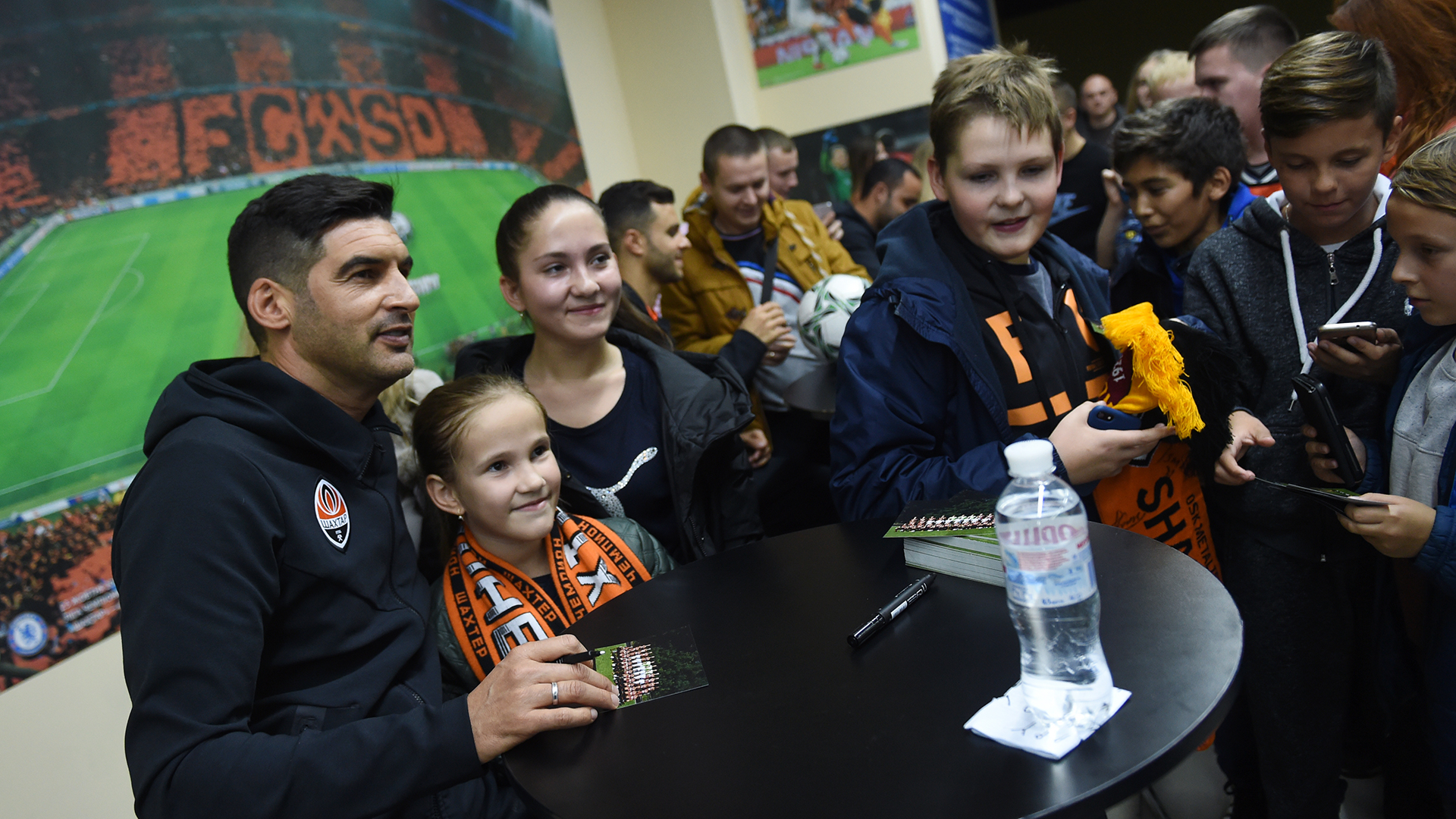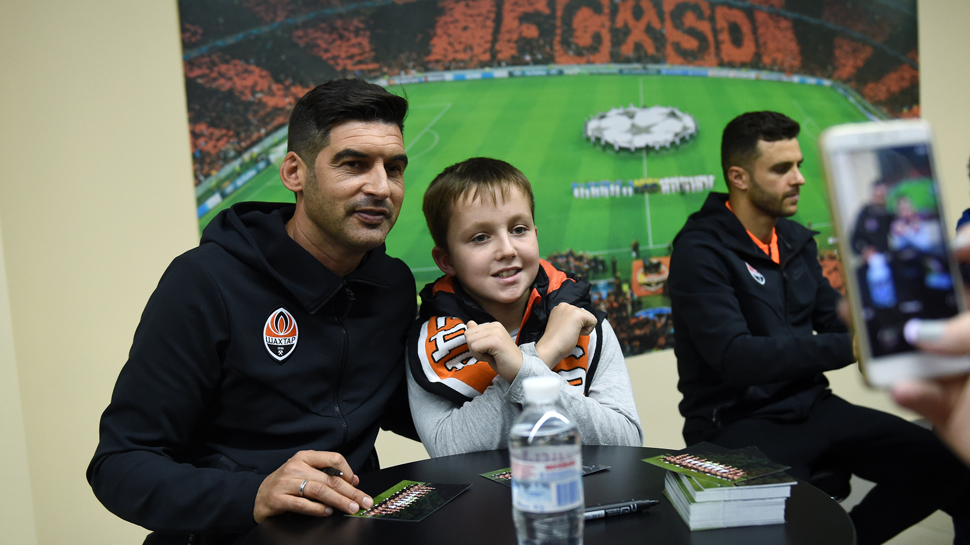 В открытии выставки и фотосессии с болельщиками приняли участие наставник "Шахтера" Паулу Фонсека, вратарь Андрей Пятов, защитник Исмаили и нападающий Жуниор Мораес.