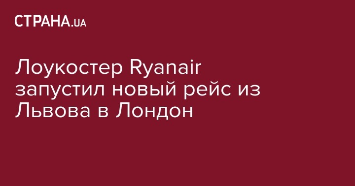 2 ноября крупнейший лоукост-авиаперевозчик Европы компания Ryanair (Ирландия) запустила рейс "Львов - Лондон". Об этом сообщают "Украинские новости" со ссылкой на представителя международного аэропорта "Львов" имени Данила Галицкого.