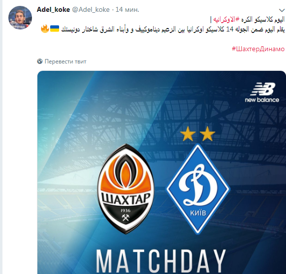 "14-е украинское классико проходит сегодня в Украине между Динамо Киев и Шахтером с Востока".