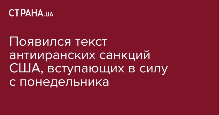 Появился текст антииранских санкций США, вступающих в силу с понедельника