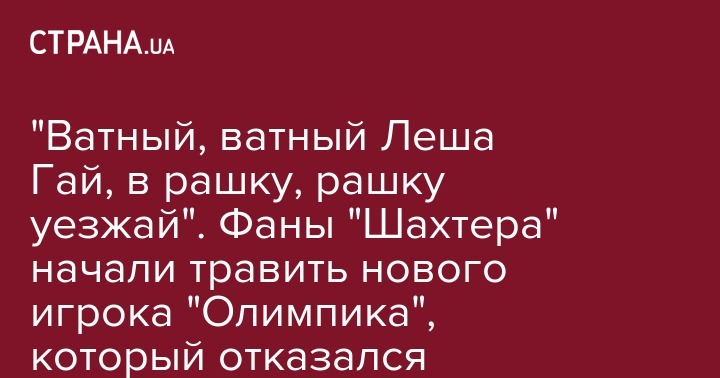 "Ватный, ватный Леша Гай, в рашку, рашку уезжай". Фаны "Шахтера" начали травить нового игрока "Олимпика", который отказался назвать Россию агрессором