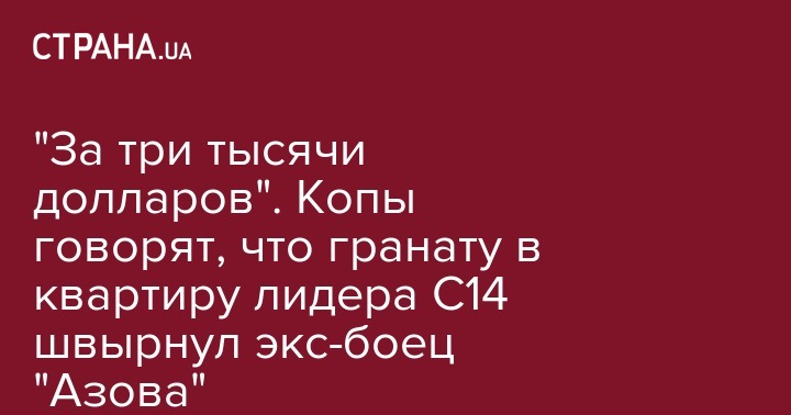 Гранату в квартиру координатора С14 Сергея Мазура, по мнению полицейских, бросил бывший боец "Азова".