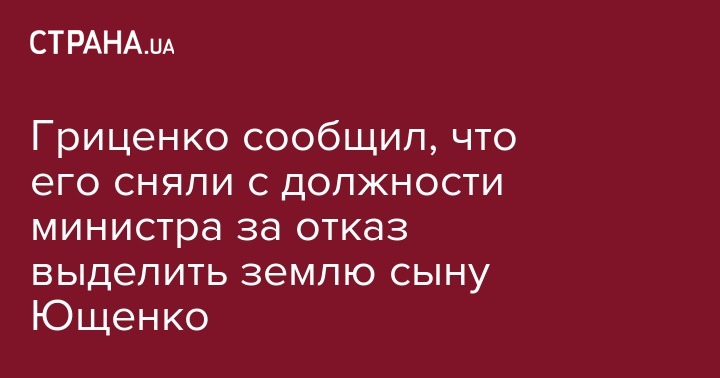 Министр обороны в 2005-2007 гг. Анатолий Гриценко заявил, что причиной снятия его с должности послужил отказ выделить землю Минобороны сыну Ющенко под проект "Больница будущего", передает "112 Украина".
