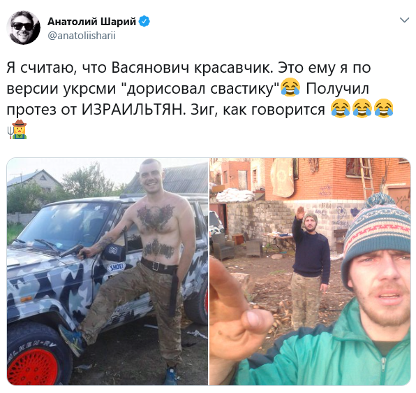 Шарий обнаружил и другие подтверждения того, что Васянович – приверженец неонацистской идеологии. В частности, на многочисленных снимках, приведенных в видео, он снимается на фоне свастики и со вскинутой вверх рукой.