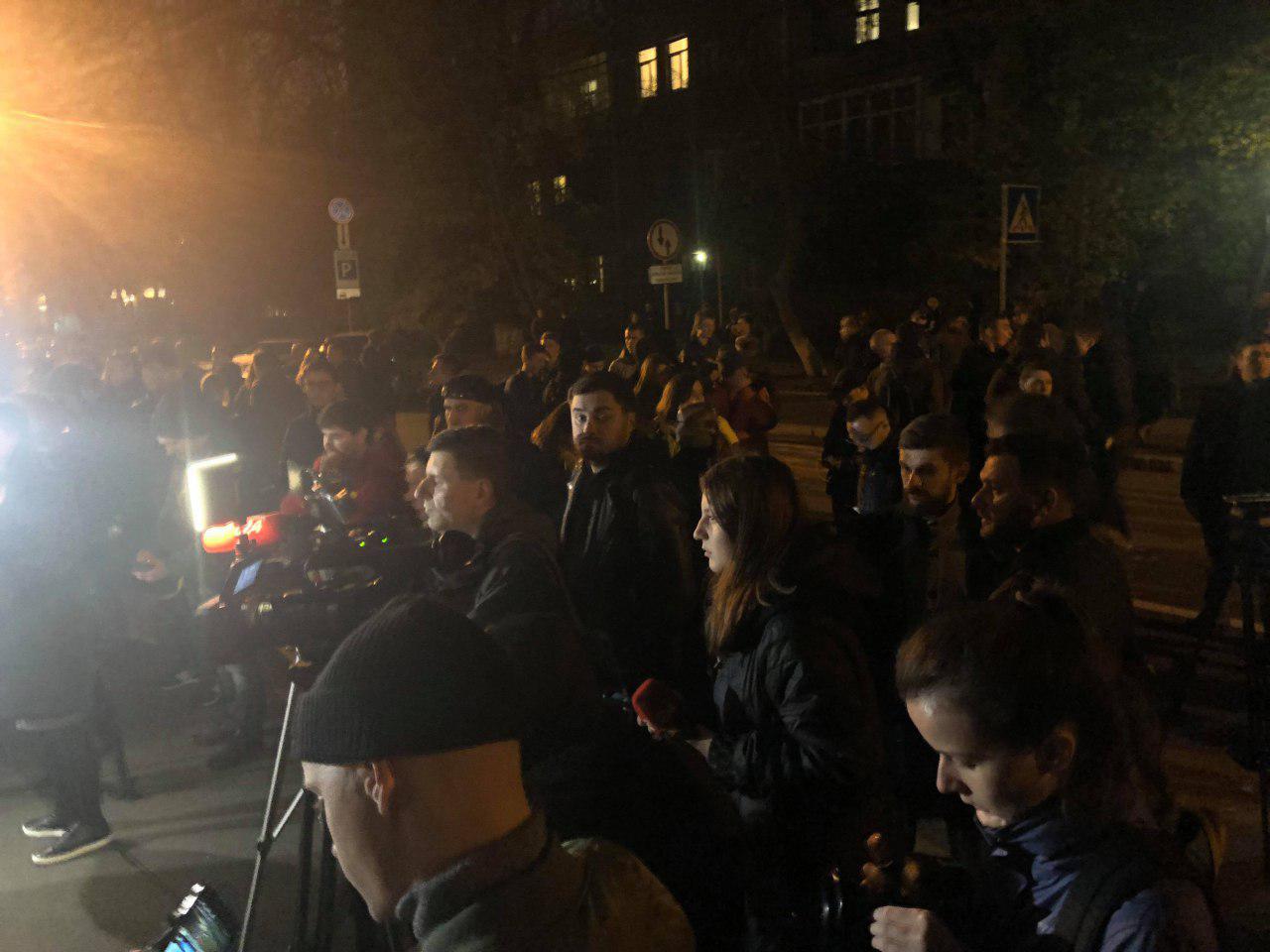 Отмечается, что возле здания достаточно много членов Нацкорпуса.
